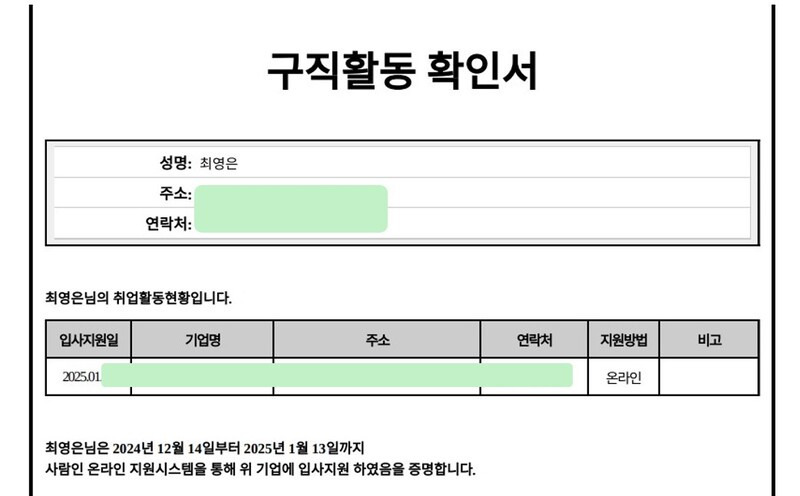 ✔ 4단계: 실업 인정 후 매월 구직활동 내역 제출 후 급여 수령