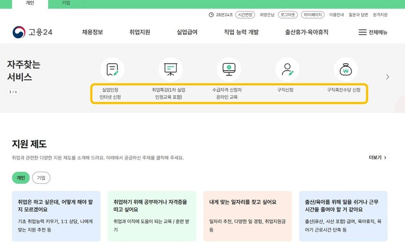 ✔ 1단계: 고용24에서 구직 신청