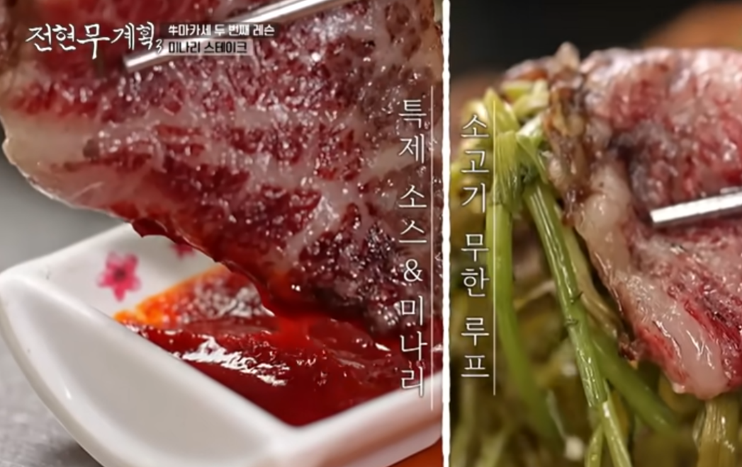 | 미나리 스테이크 | 미나리 향 + 한우 스테이크의 고소함 결합 | 방송 대표 메뉴 |