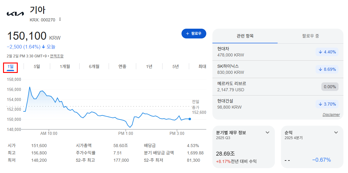 종목은 기아 주가이며,