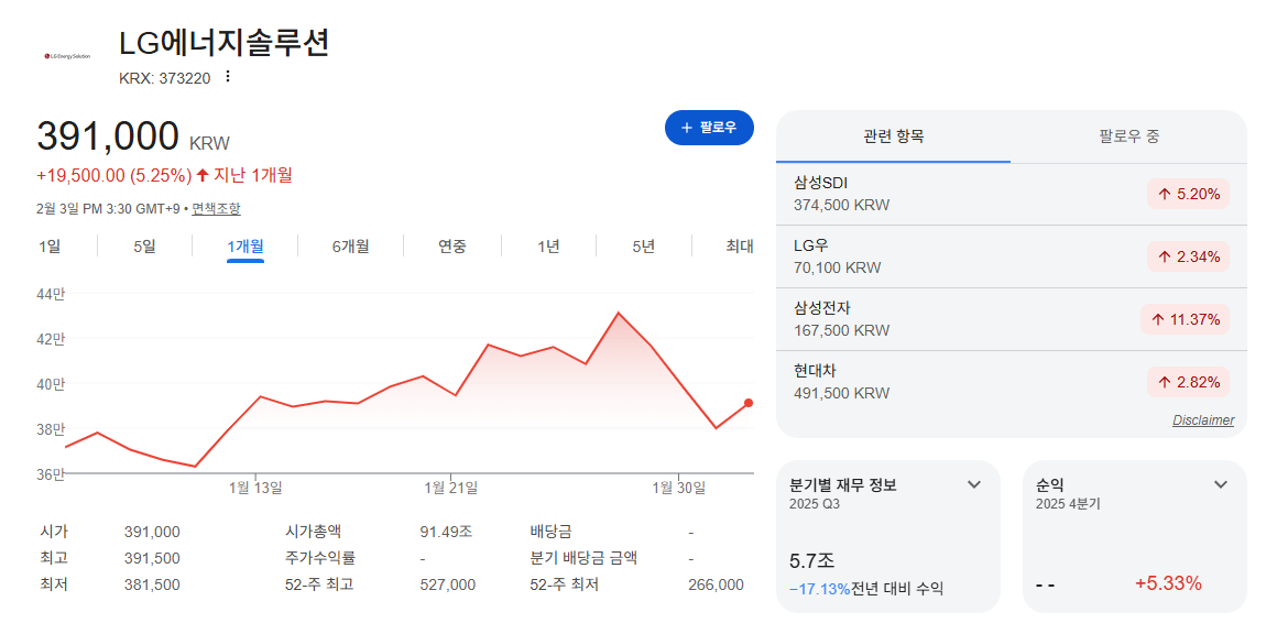 이는 LG에너지솔루션이 순수 테마주가 아닌 실적 기반 대표주로 인식되고 있음을 보여준다.