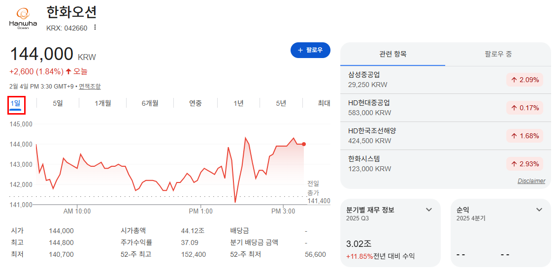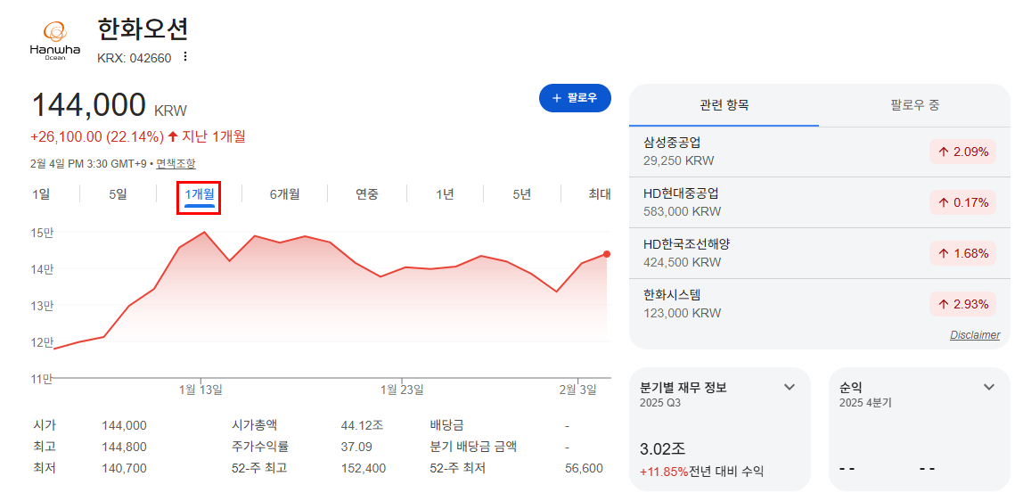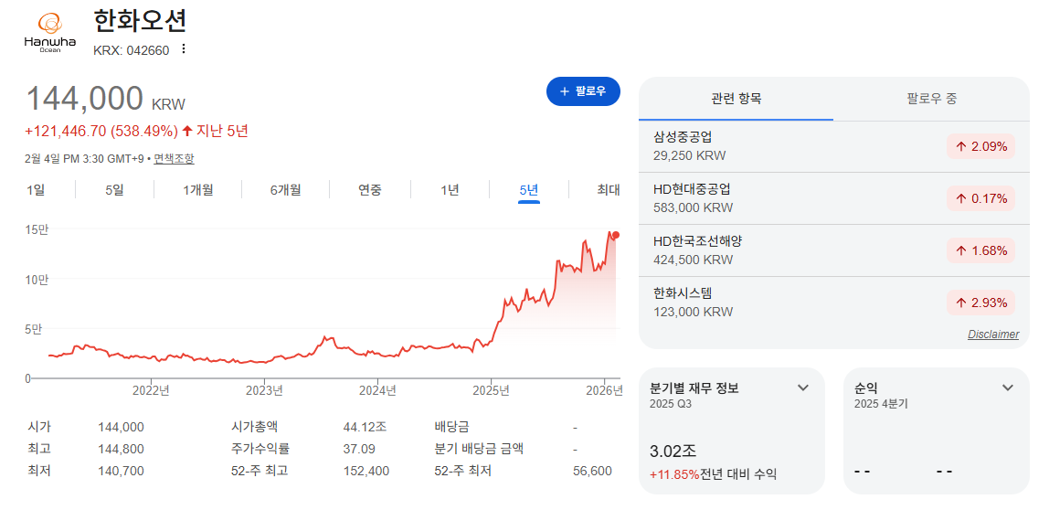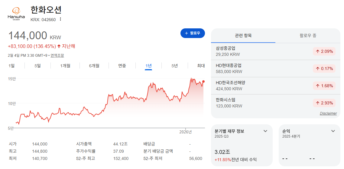 | 종목 | 한화오션 |