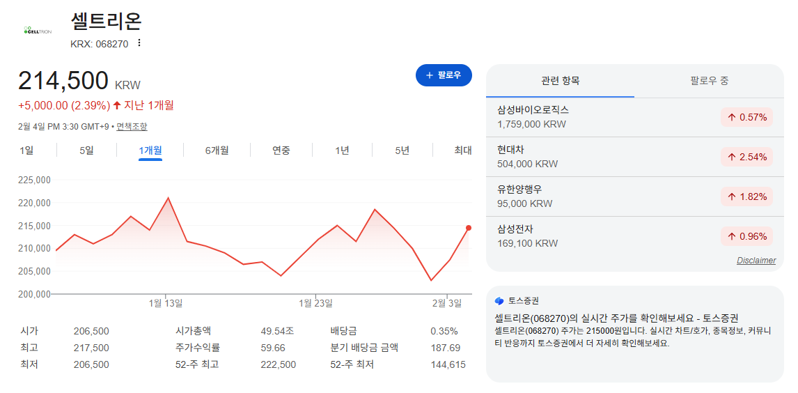 | 시가총액 | 수십 조 원 | 국내 바이오 대형주 |