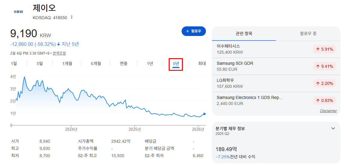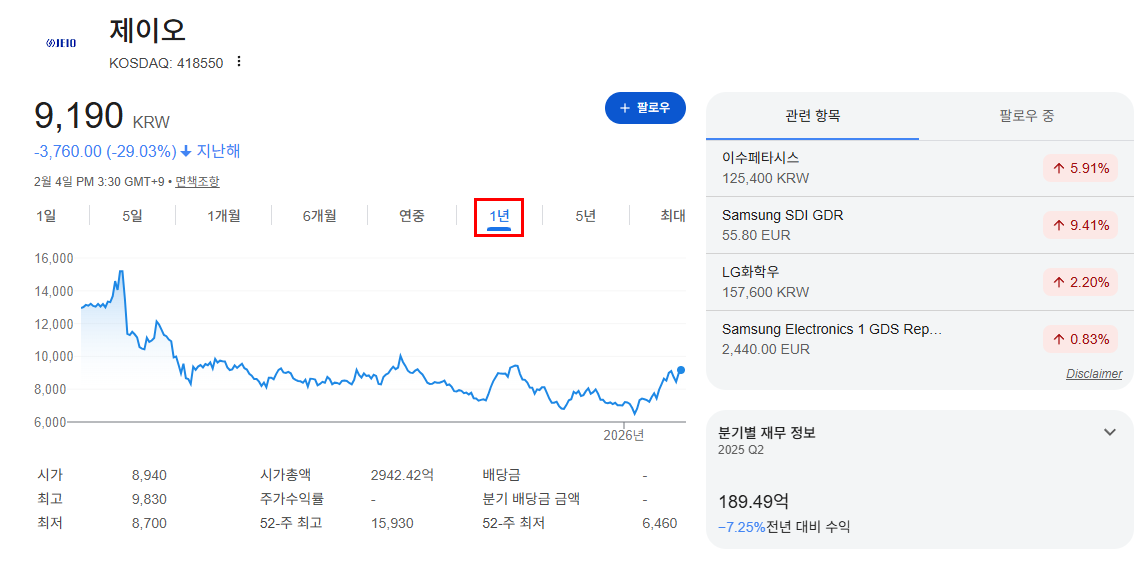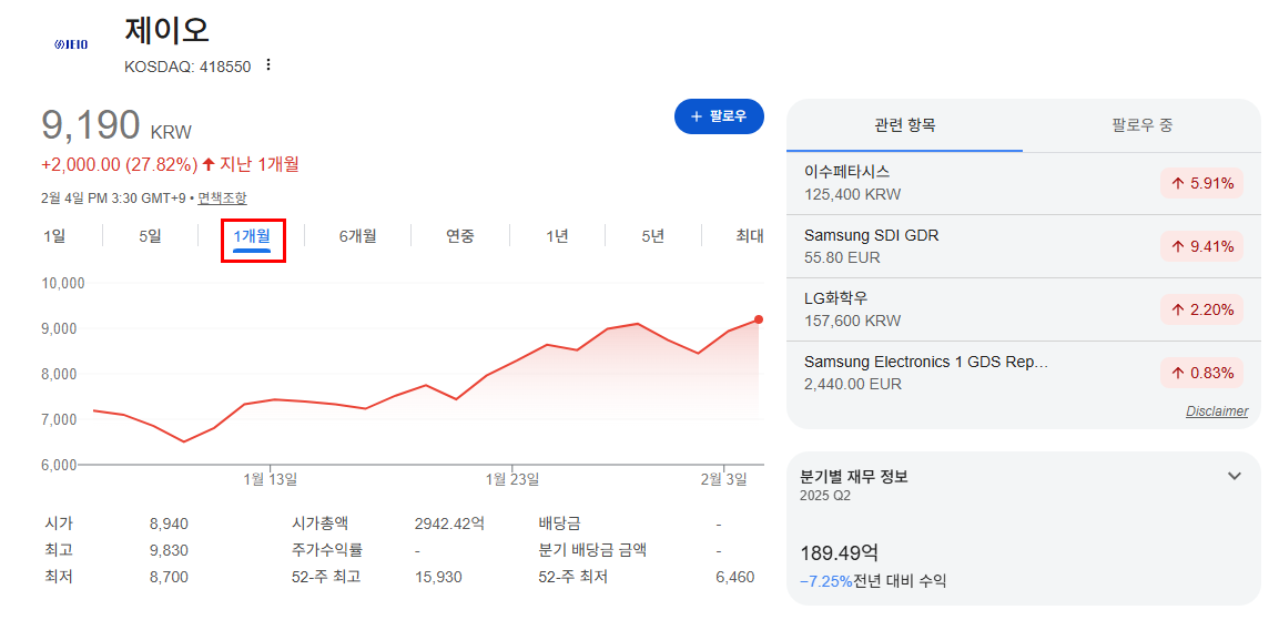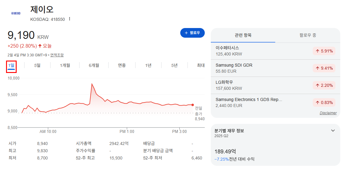 | 종목 | 제이오 |