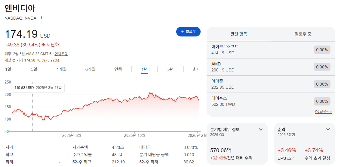 시장은 엔비디아를 AI 시대의 핵심 인프라 자산으로 인식하는 분위기다.
