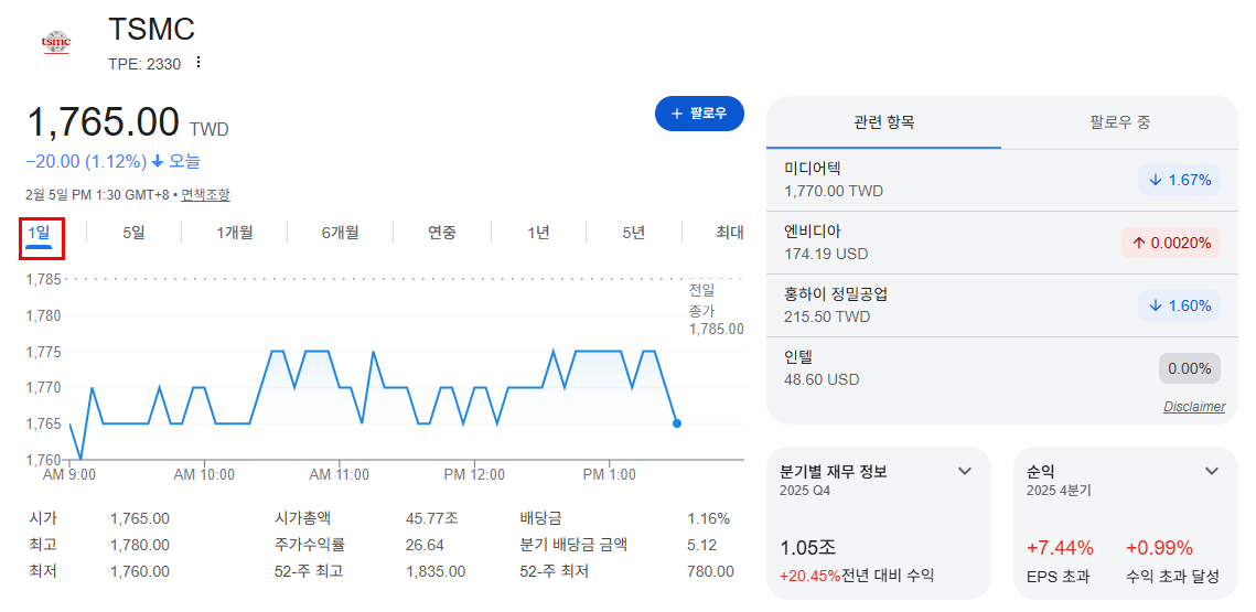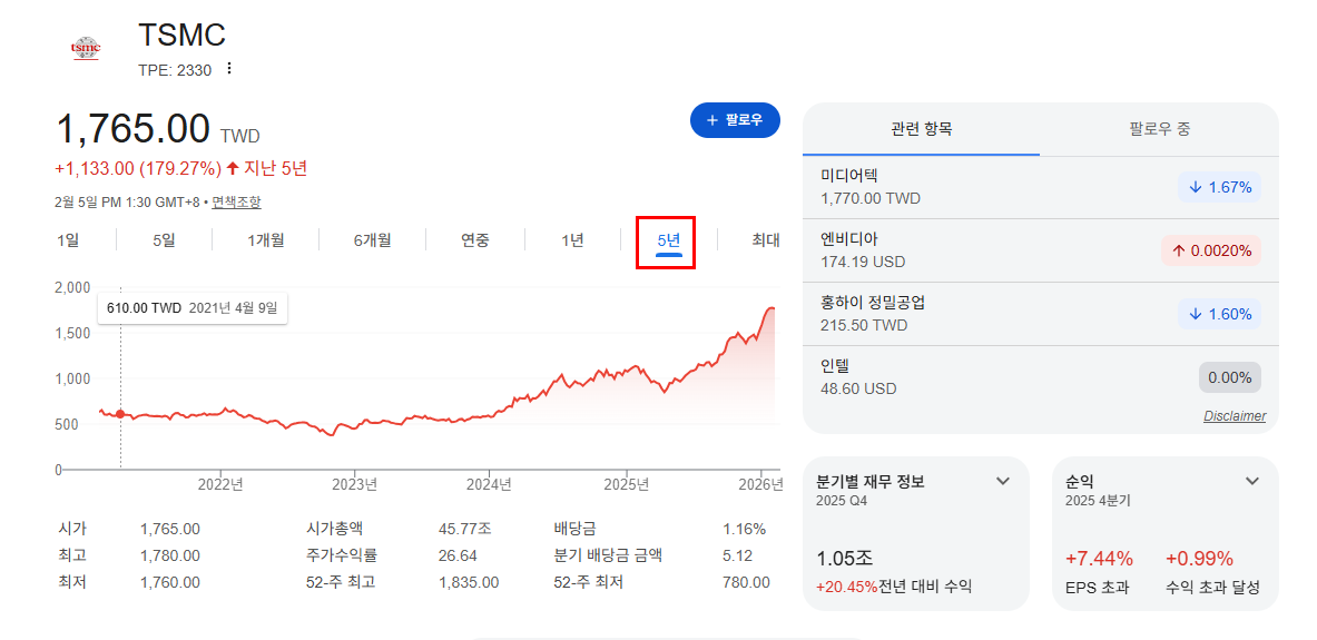 | 종목 성격 | 글로벌 파운드리 절대 강자 |