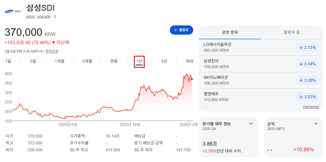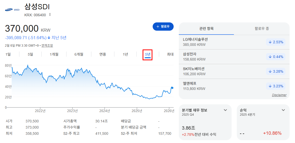 최근 삼성SDI 주가는 2차전지 업종 전반의 조정 흐름과 함께