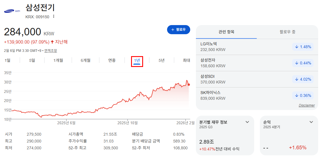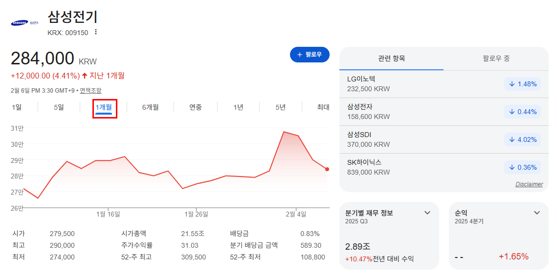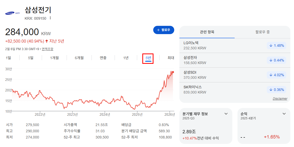 | 종목 | 삼성전기 |