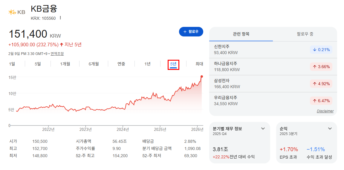 본 글은 2026년 상반기 기준으로 작성된 KB금융 주가 전망 분석이다.