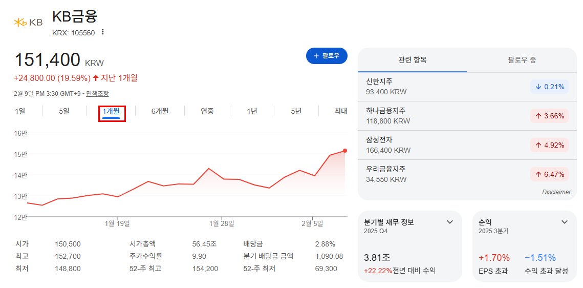| 시가총액 | 약 30조 원 내외 | 금융 대형주 |