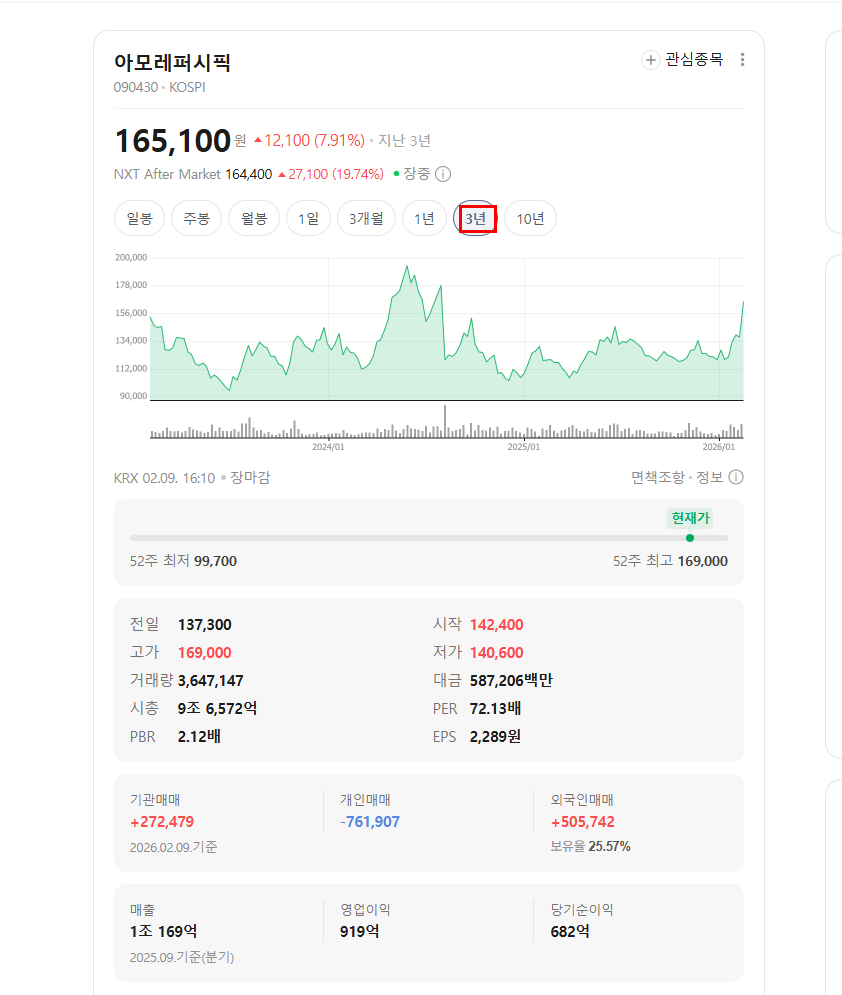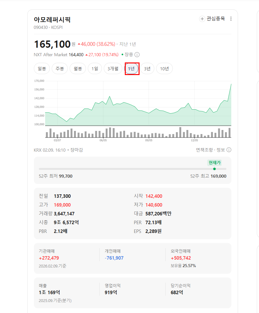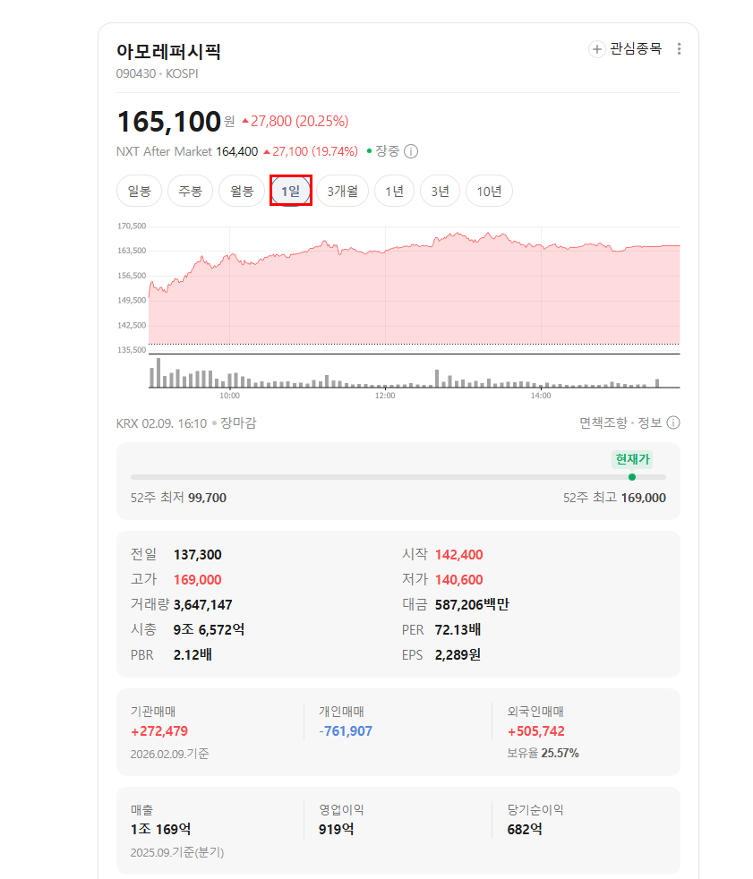 | 종목 | 아모레퍼시픽 |