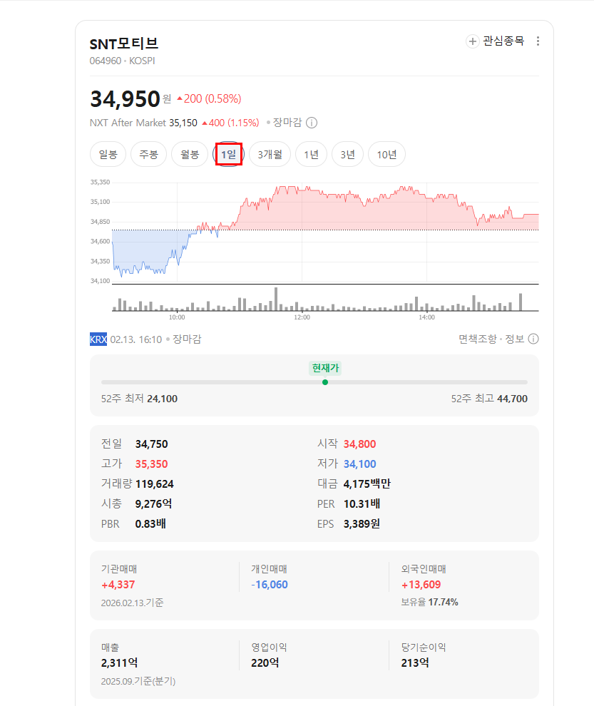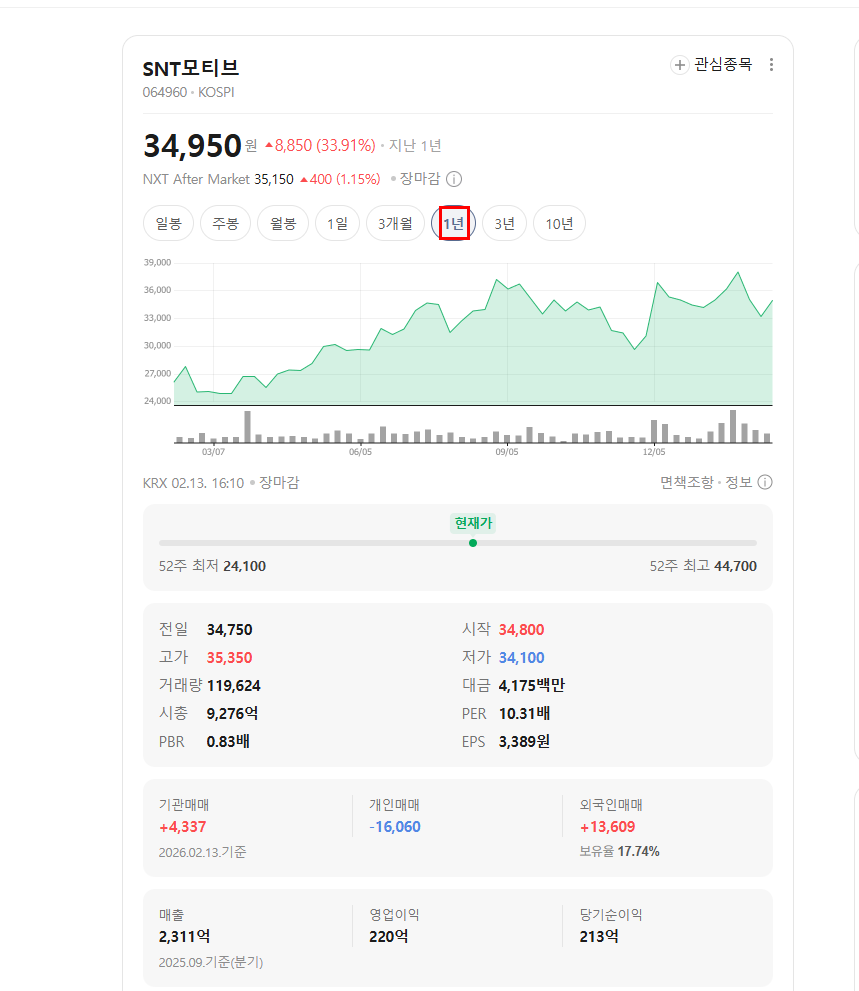 SNT모티브 주가 전망 분석입니다.