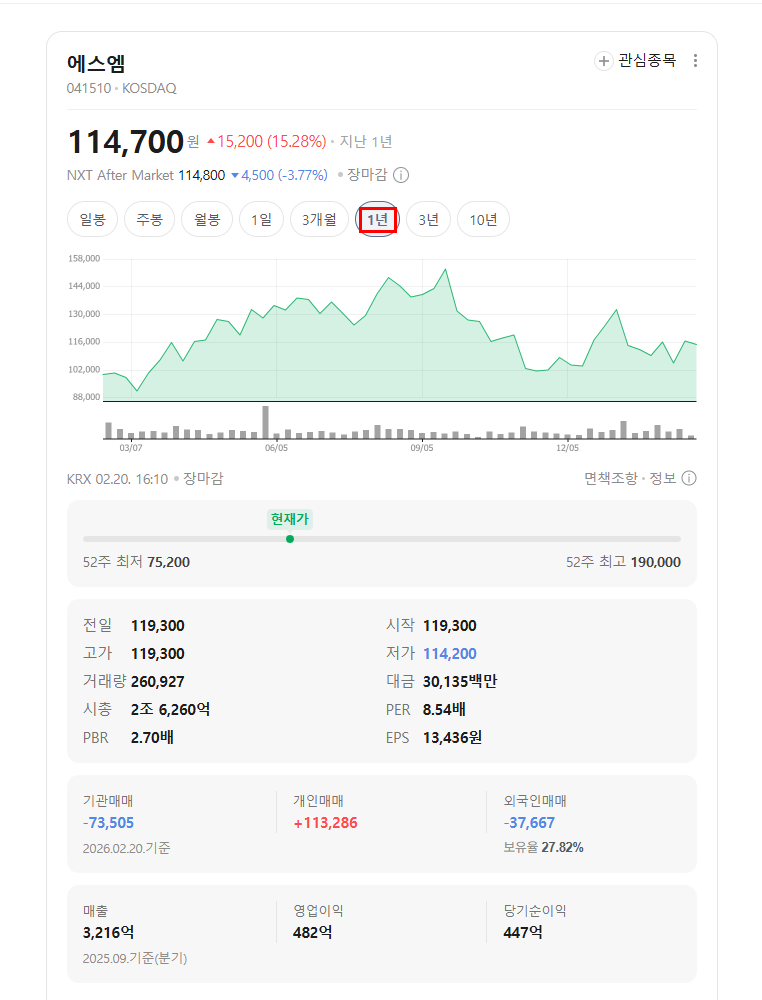 | 종목 | 에스엠(SM엔터테인먼트) |