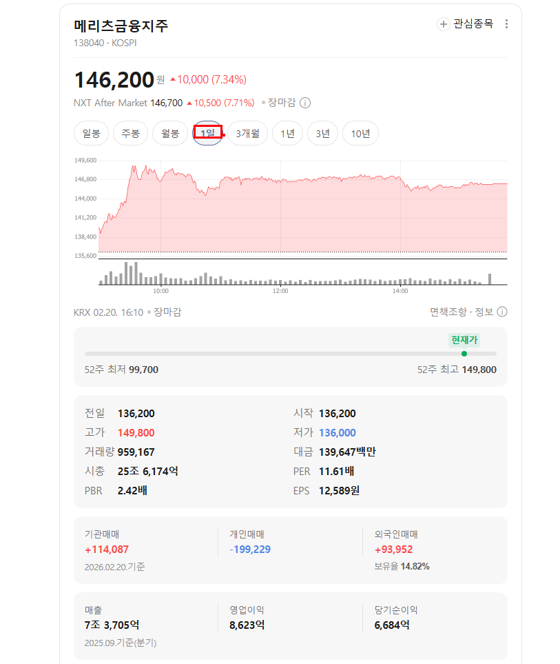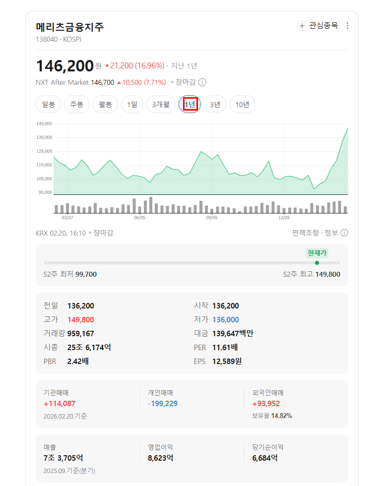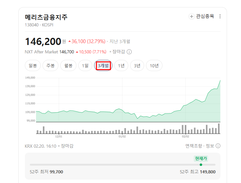 | 종목 | 메리츠금융지주 |