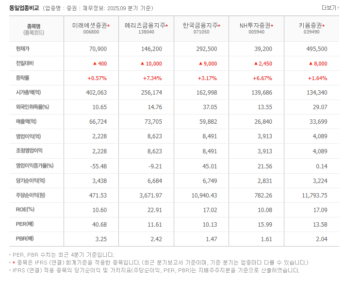 | 종목 성격 | 증시 사이클 민감 대형 증권주 |