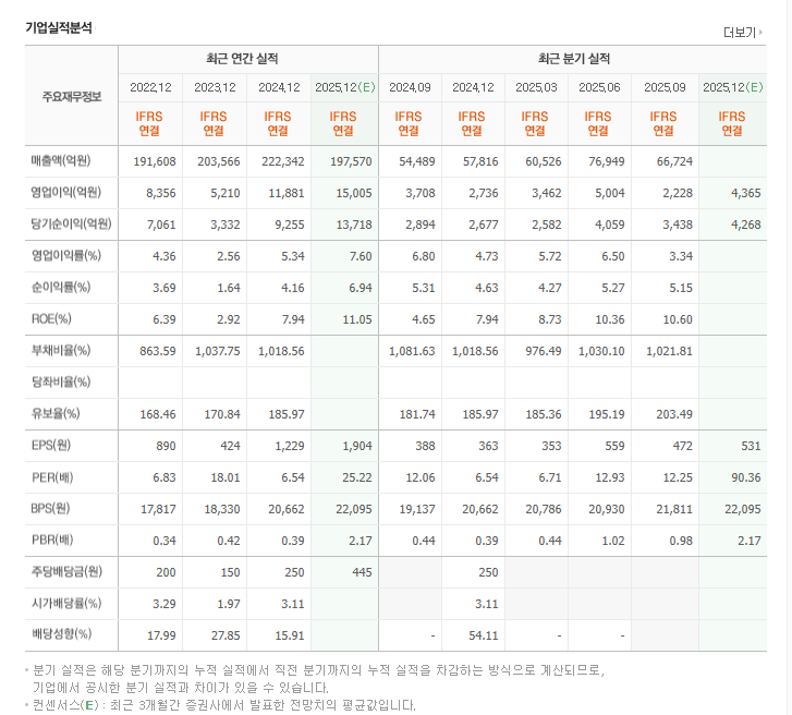 | ROE | 한 자릿수~10%대 | 업황에 따라 변동 |