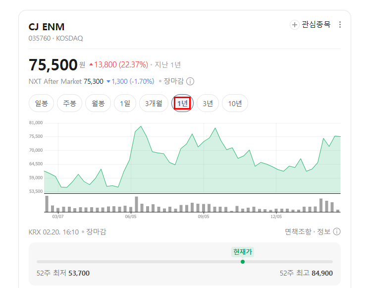 | 종목 | CJ ENM |