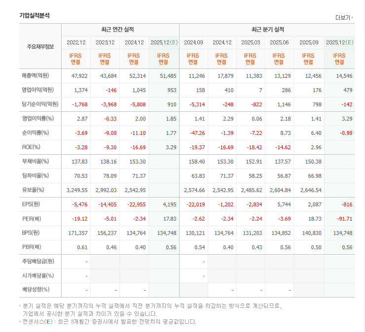 | 시가총액 | 약 1.5~1.7조원 | 실적 개선 시 멀티플 확장 여지 |
