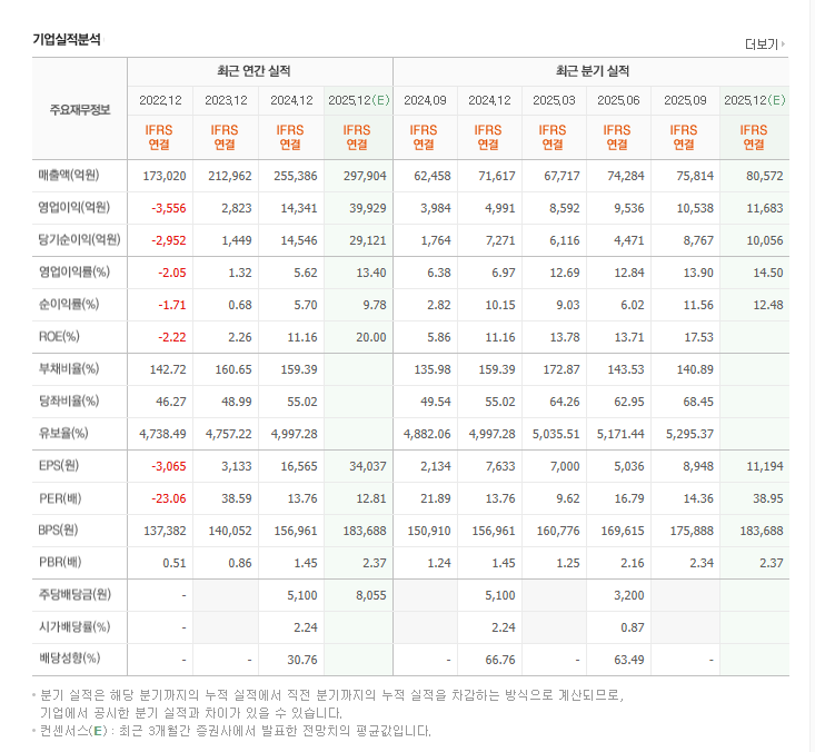 | 25년 3Q | 약 5,200억 | 마진 개선 |