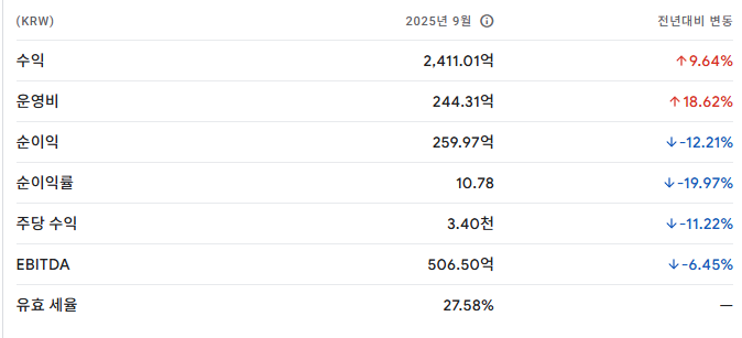| 25년 3Q | 420억 내외 | 개선 |