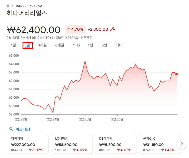 | 종목 | 하나머티리얼즈 |