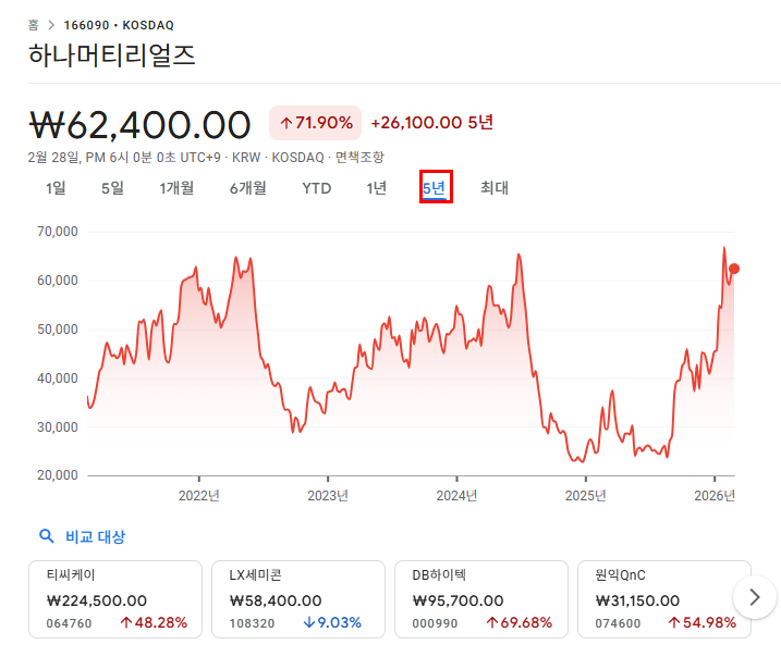 본 글은 2026년 상반기 기준 하나머티리얼즈 주가 전망 분석이다.