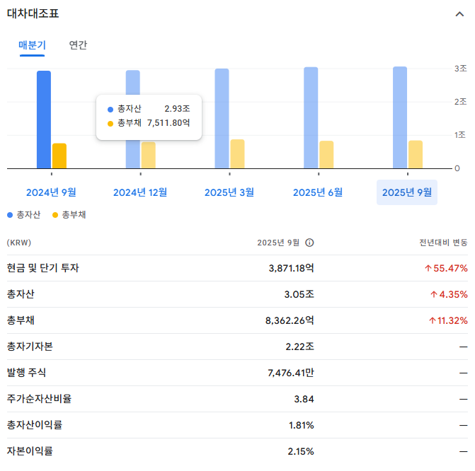 | 시가총액 | 대형 | 안정성 높음 |