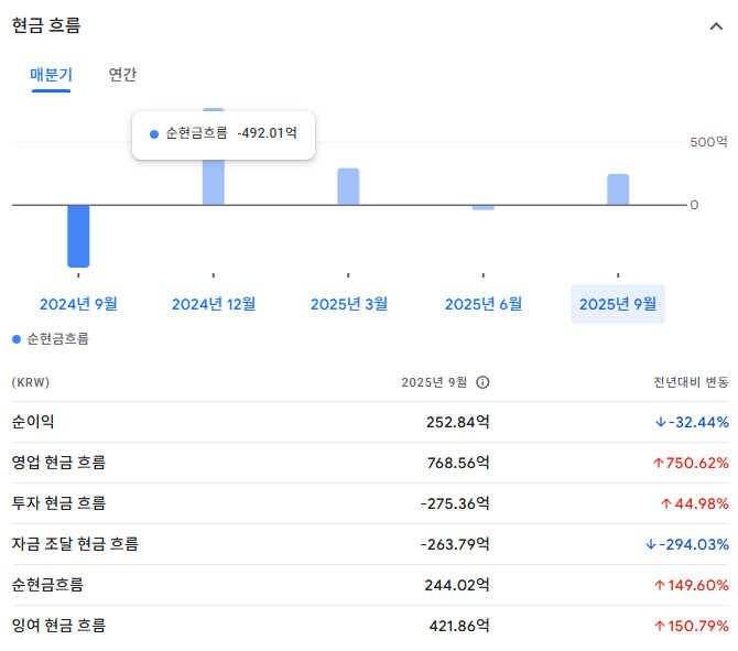 | 25년 3Q | 480억 내외 | 확대 |